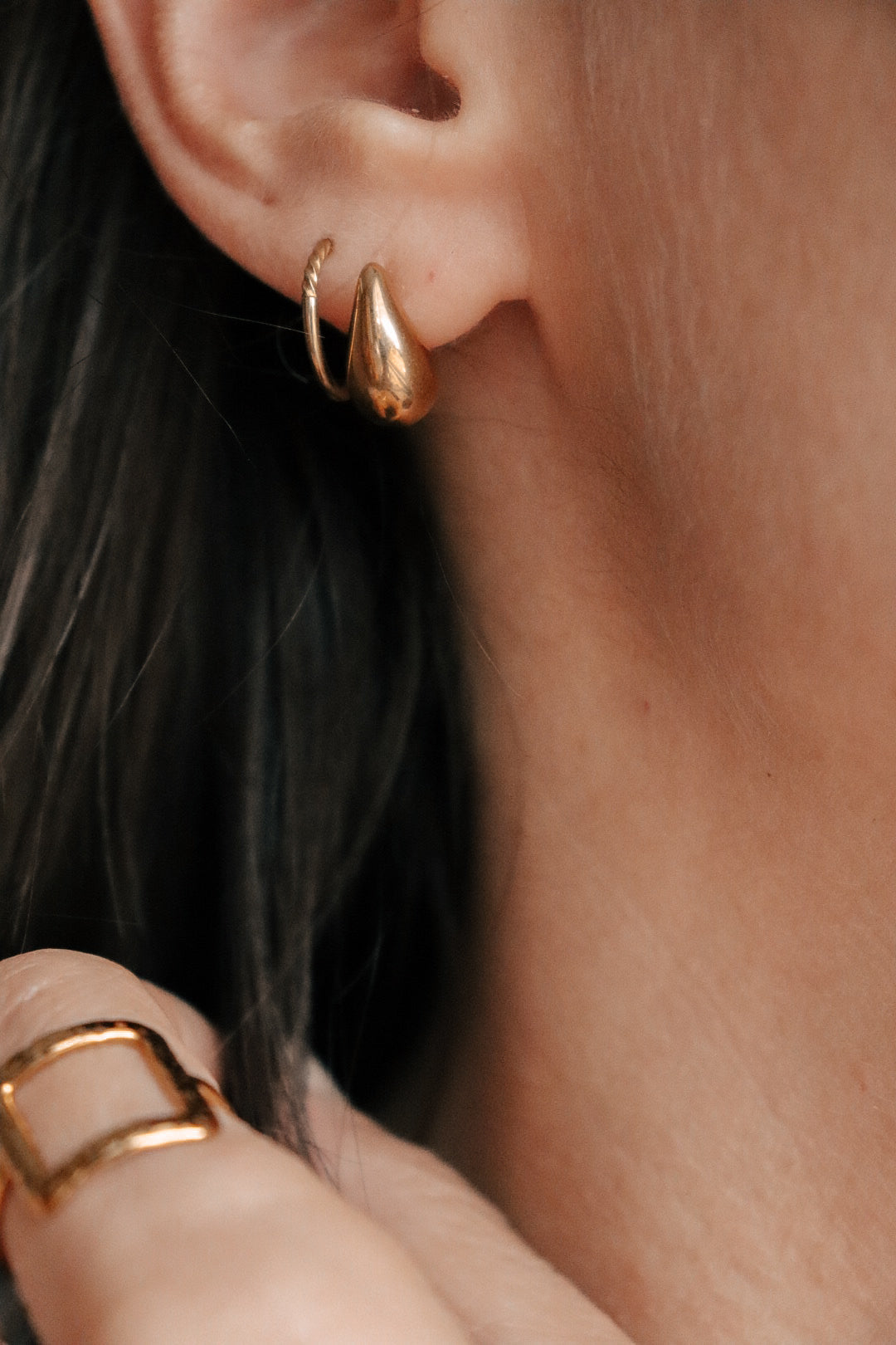 Petites boucles d'oreilles en forme de goutte, disponible dans l'or et l'argent.