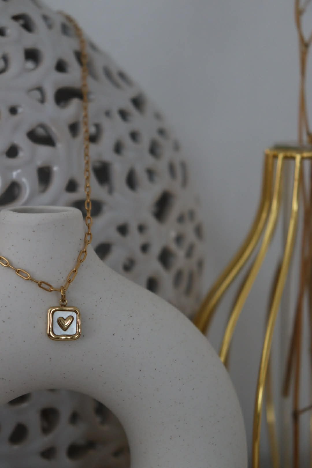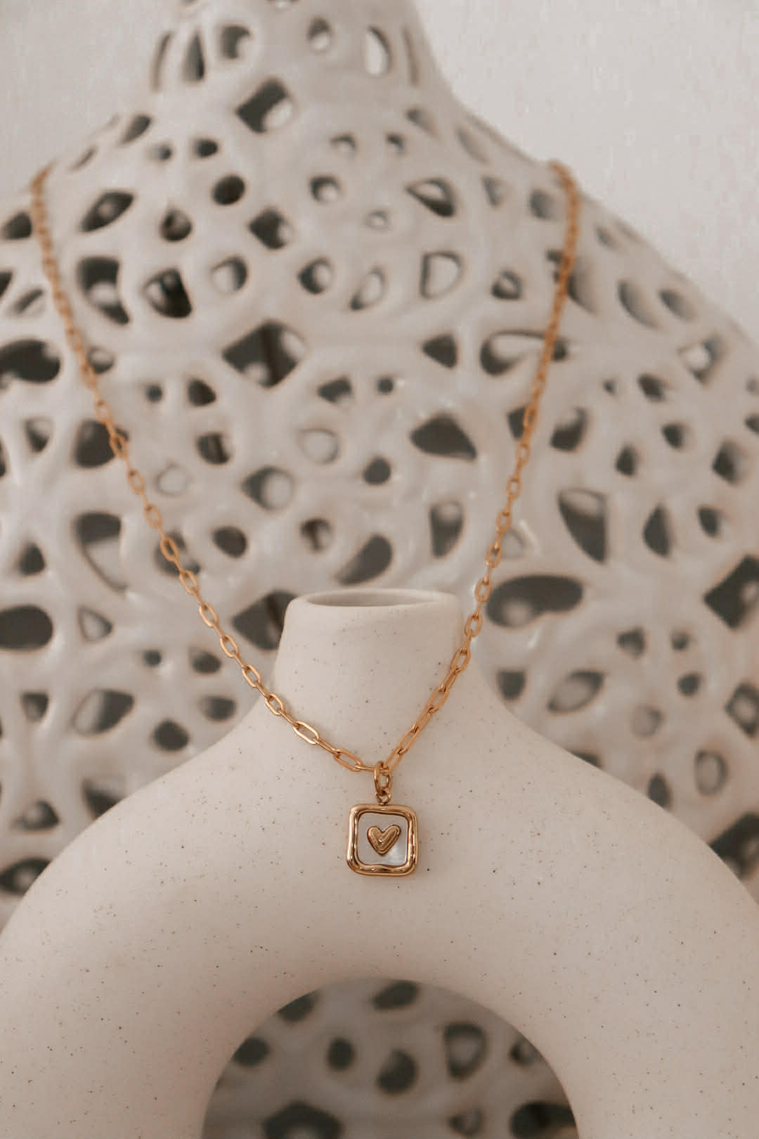 Collier avec une chaîne trombone comprenant une breloque avec un coeur.