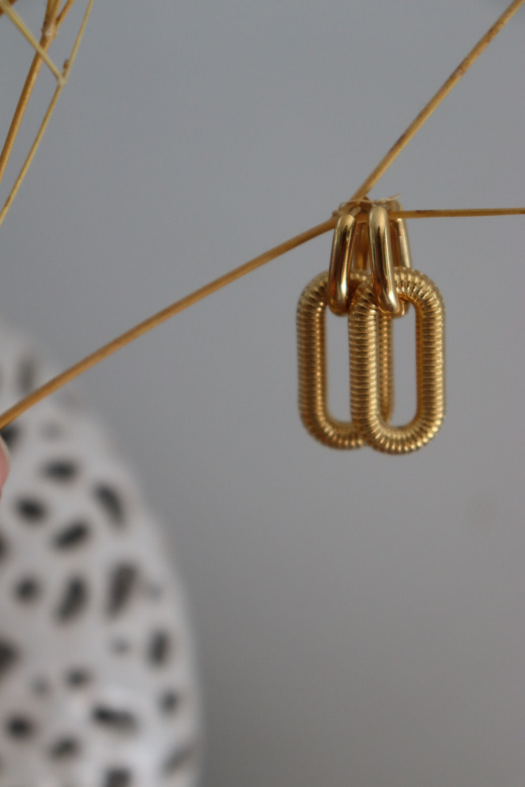 Boucles d'oreilles 2 en 1 ! Vous pouvez porter les boucles d'oreilles de deux façons, il est possible d'enlever la deuxième anneau pour un style plus simple.
